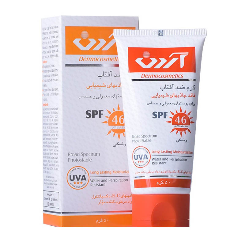 کرم ضد آفتاب رنگی SPF46 آردن فاقد جاذب های شیمیایی مناسب پوست های معمولی و حساس ۵۰ گرم